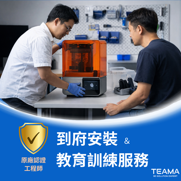 本方案包含 Form 4 主機、成型槽、刷具、後處理工具組與成型平台,並於開幕期間升級為易拆式平台,大幅提升拆件效率與操作便利性。